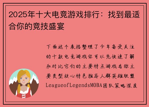 下面这个表格整理了今年备受关注的十款电竞游戏,你可以先快速了解和对比它们的主要特点。 | 游戏名称 | 主要类型 | 核心特色 | 推荐人群 | | :-- | :-- | : | : | | 英雄联...